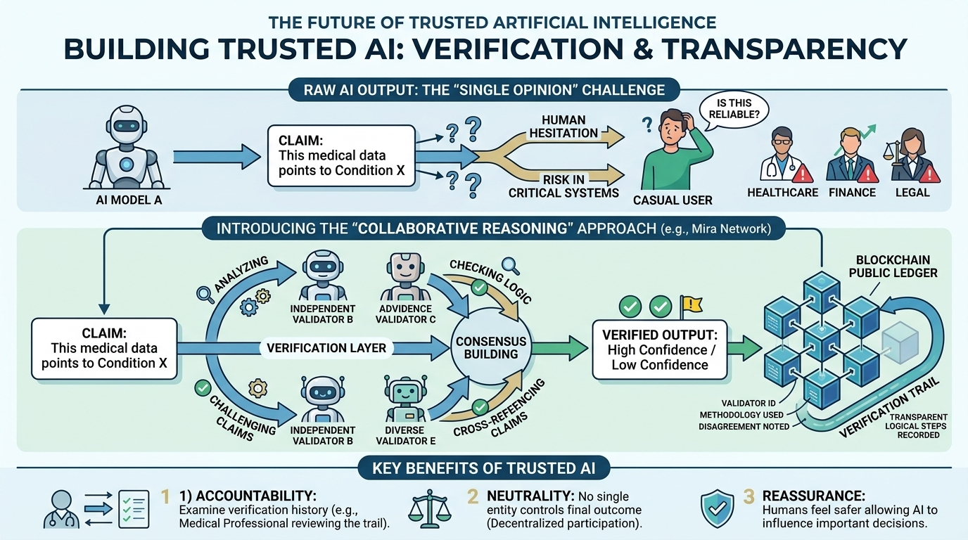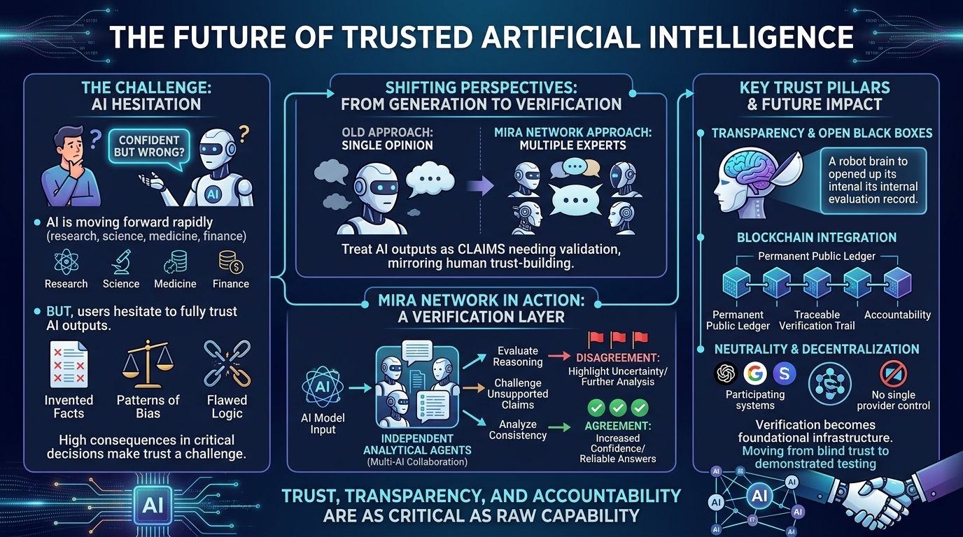Artificial intelligence is moving forward at a pace that still surprises me every time I think about it. Just a few years ago, most AI systems struggled with basic instructions and simple conversations. They could answer questions in a mechanical way, but the results often felt shallow and limited. Today things look very different. AI tools are writing research summaries, helping scientists explore new ideas, assisting doctors in analyzing medical data, and supporting financial analysts as they study complex market patterns. I’m seeing AI quietly become part of everyday decision making in ways that would have sounded unrealistic not long ago. But even with all this progress, one uncomfortable truth keeps appearing again and again. No matter how powerful these systems become, people still hesitate to fully trust what AI produces.