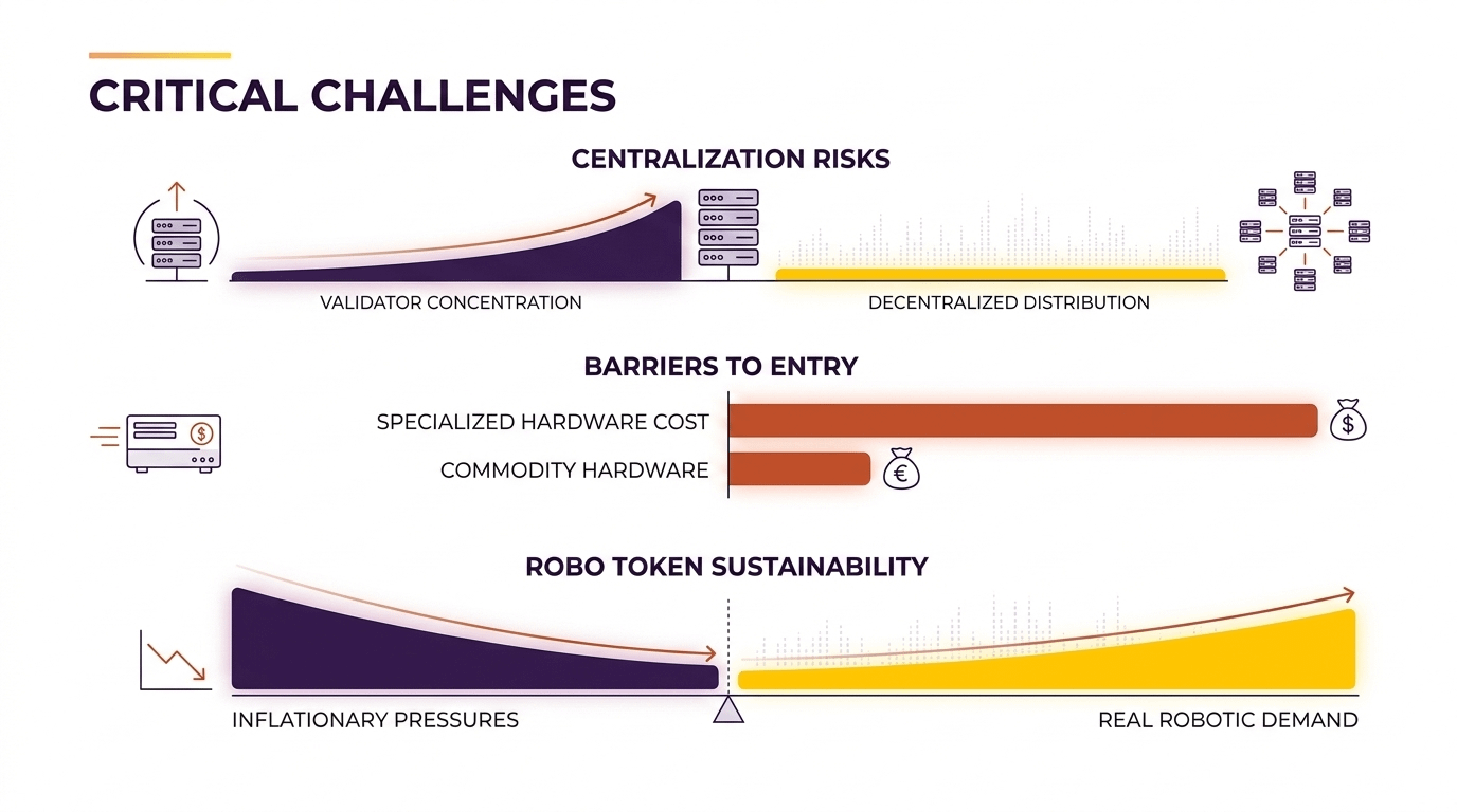 In my view, Fabric’s vision is quite ambitious. The idea of building a transparent coordination layer for machines makes logical sense as AI systems become more autonomous. But the path forward is not without risks. Validator power could concentrate if the infrastructure requirements are too demanding. Specialized hardware may create barriers that lead to centralization among a small group of operators. And the token economy must prove that incentives can remain balanced without relying on excessive inflation.