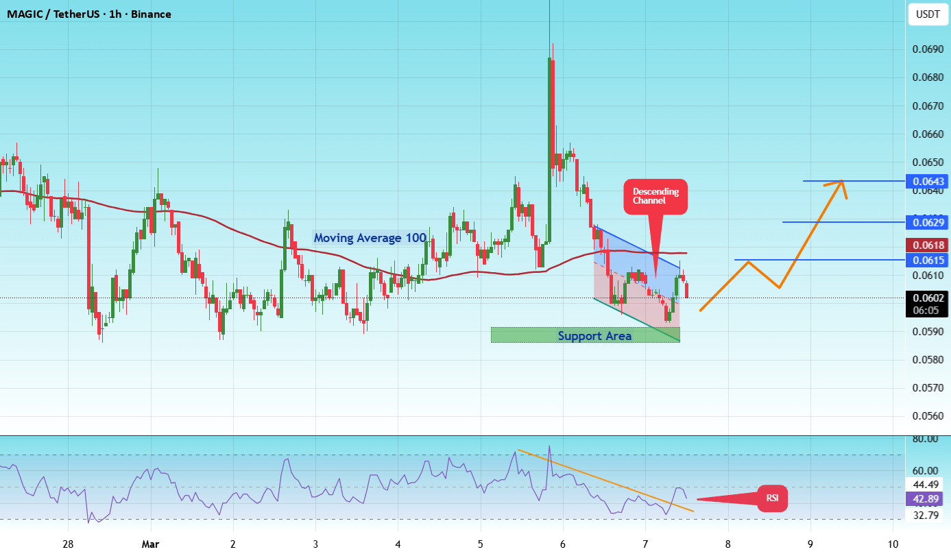 تم العثور على منطقة دعم رئيسية (باللون الأخضر) عند 0.0587، وقد ارتد السعر عن هذه المنطقة عدة مرات، مما يجعلها مستوى دعم قوي.