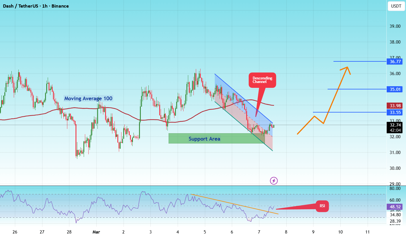 تم العثور على منطقة دعم رئيسية (باللون الأخضر) عند 31.88، وقد ارتد السعر من هذه المنطقة عدة مرات، مما يجعلها مستوى دعم قوي.