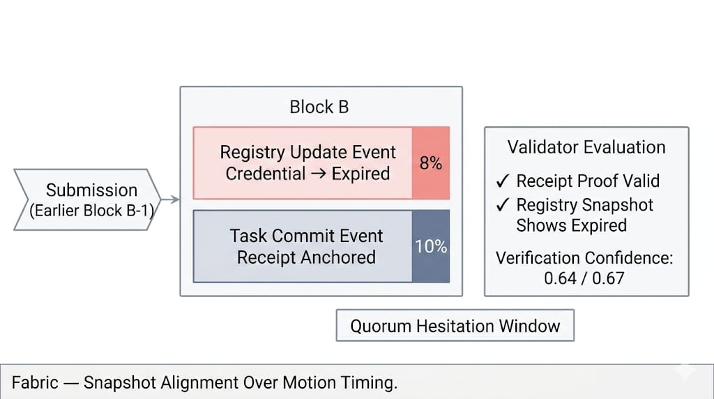 Payload transfer confirmed on the machine side before the governance update finished propagating across the Fabric protocol's validator mesh. From the robot’s side, nothing had changed.