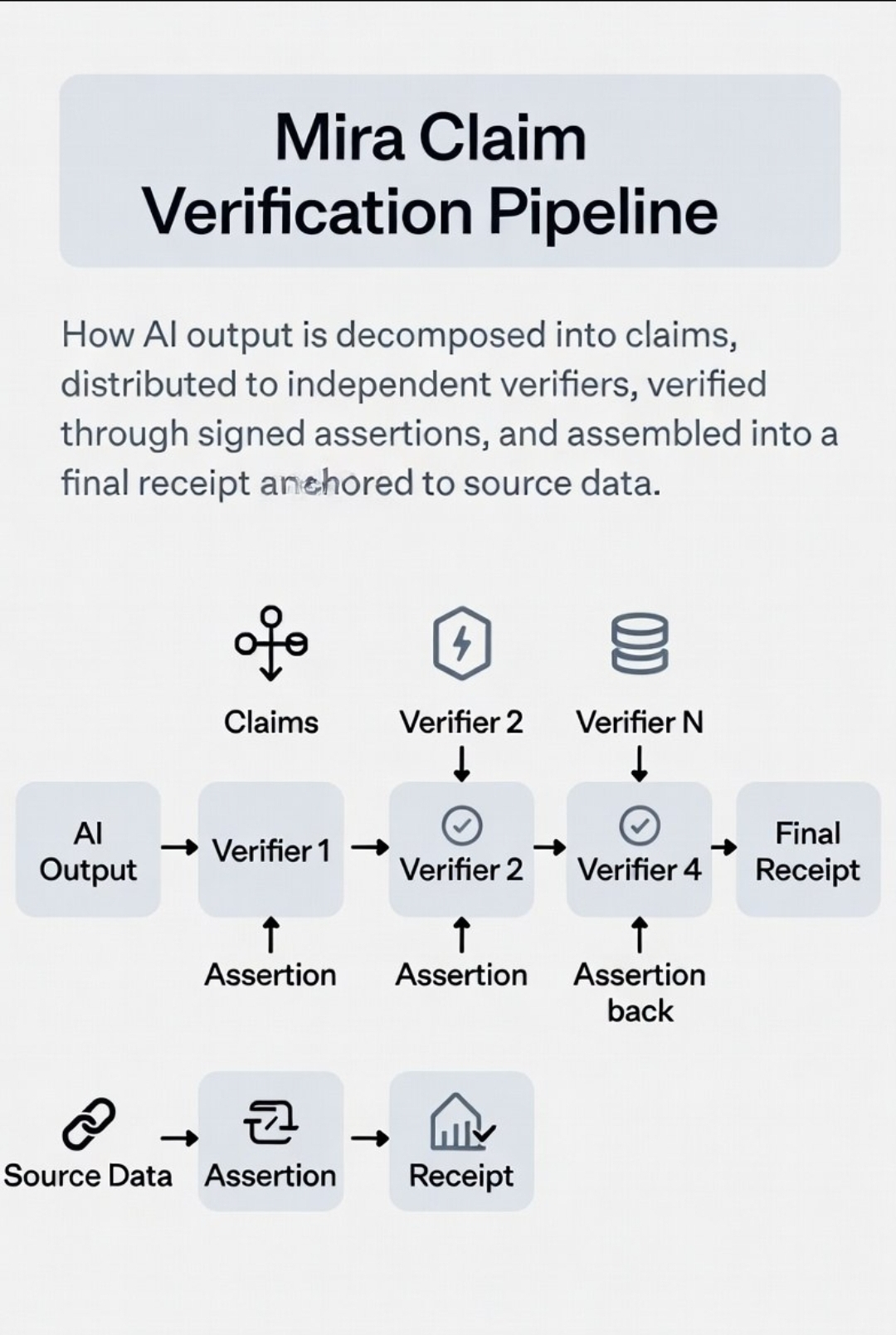 The mechanism is quite clever. Output in Mira gets broken down into claims. Each different verifier is checking a different slice. Each one comes up with a signed assertion. These paired with the others make up a final receipt. If the assertion’s source is ambiguous, if a hash is pointing to something that doesn’t exist anymore, the receipt is a conclusion without a chain.