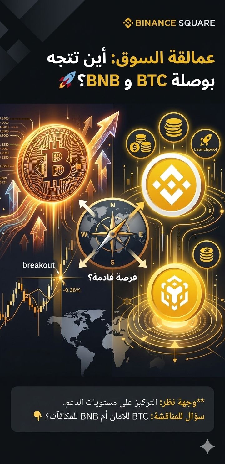 سؤال للمتابعين: لو معك سيولة الآن، هل ستعزز محفظتك بـ البيتكوين للأمان، أم بـ BNB للاستفادة من مكافآت المنصة؟ شاركونا آراءكم في التعليقات! 👇