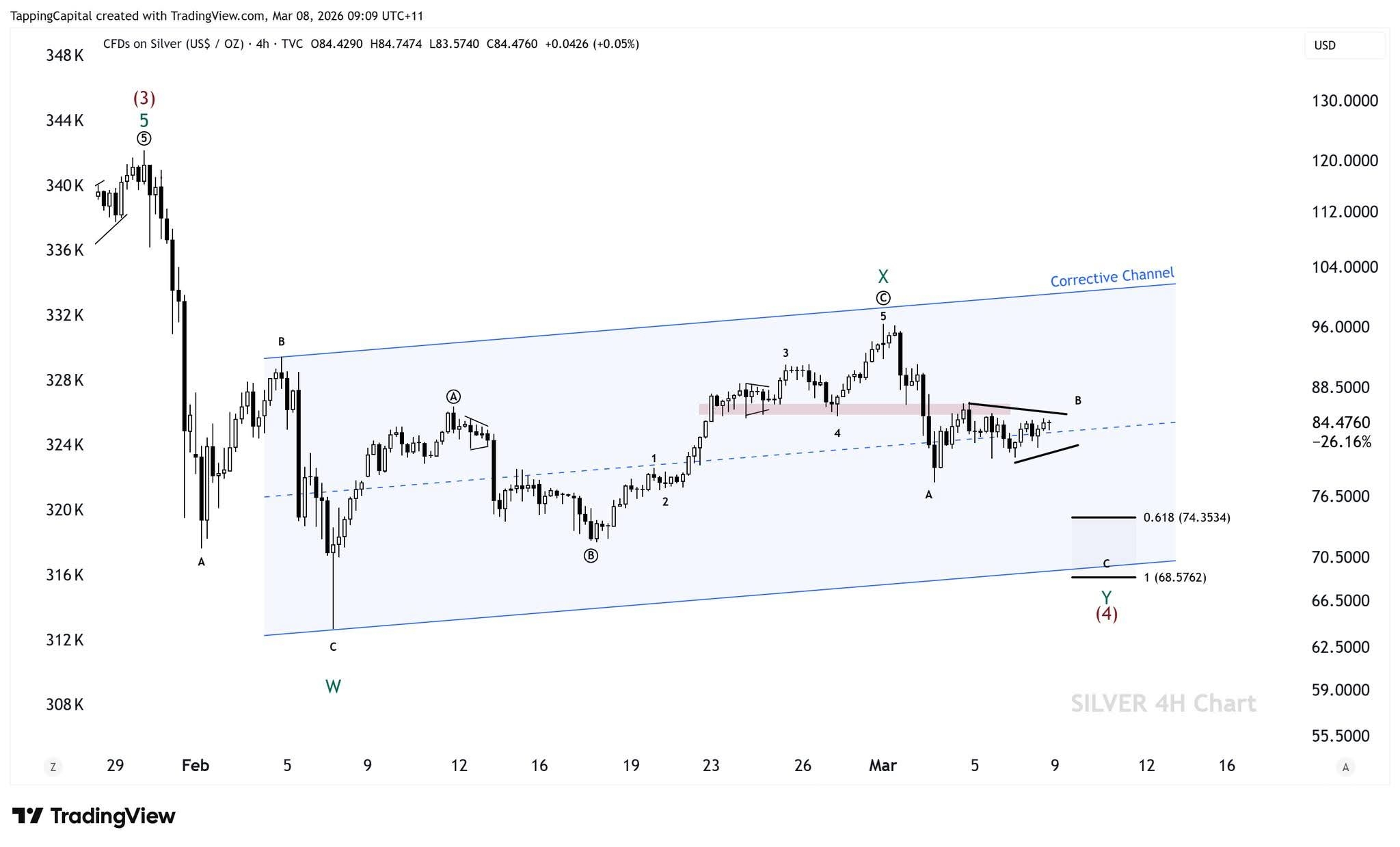 If this structure continues to unfold, Gold could push slightly higher before rolling over into the final Wave 5.