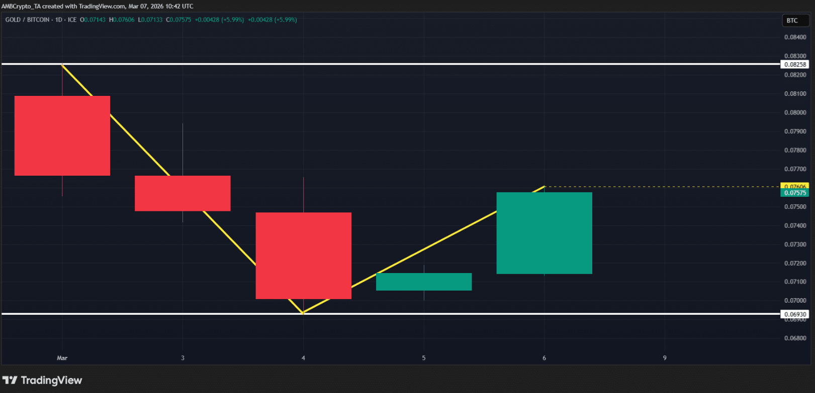 Biểu đồ XAU/BTC hàng ngày | Nguồn: TradingView