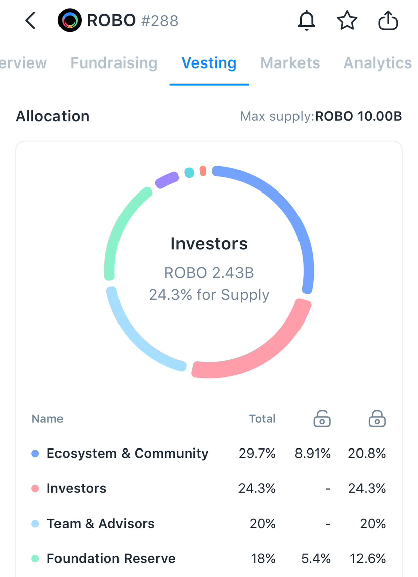 L'offerta totale di ROBO è fissata a 10 miliardi di token, con una struttura di allocazione progettata per dare priorità allo sviluppo dell'ecosistema e alla reale utilità piuttosto che alla speculazione.