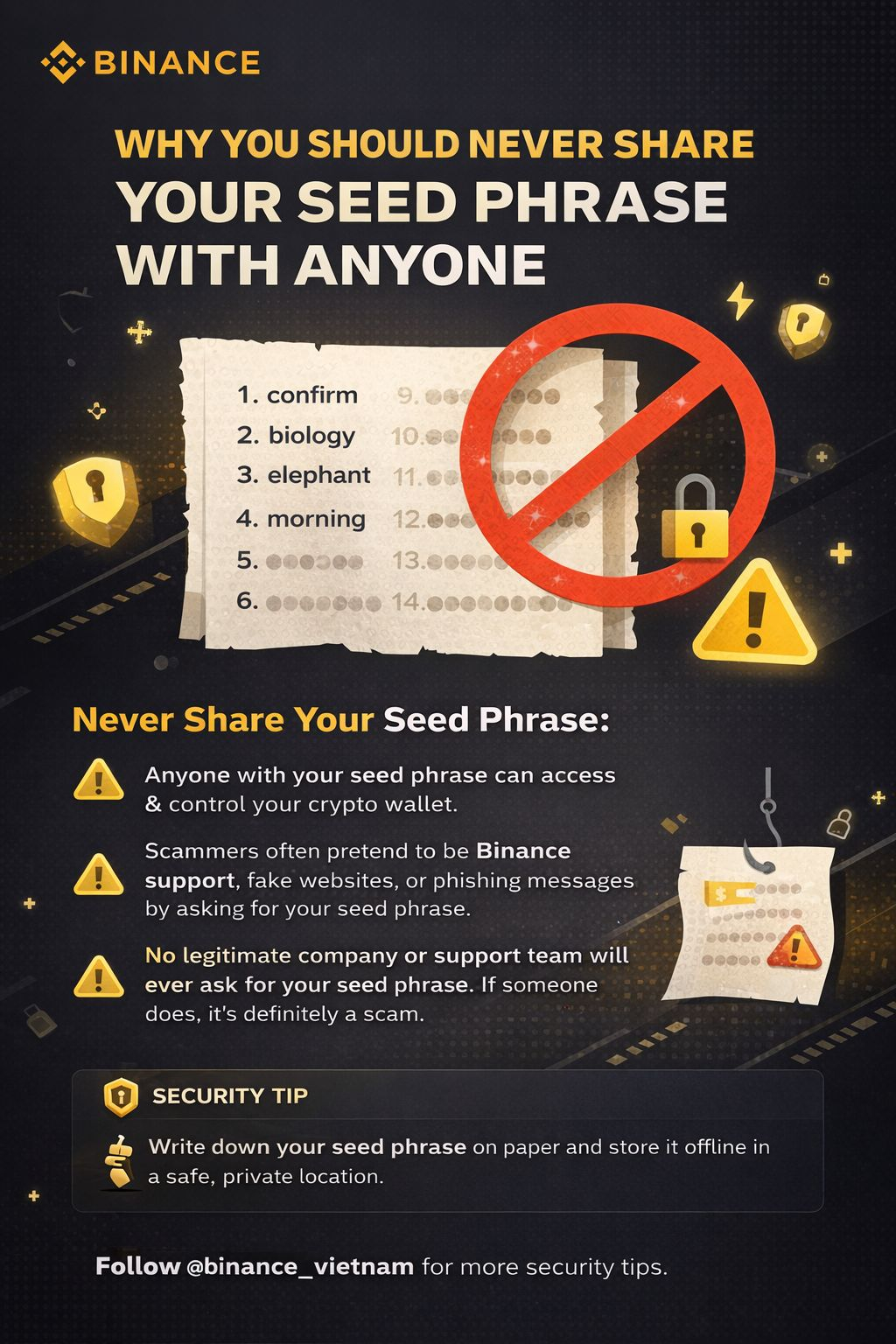 If you want to learn more about crypto security and how to avoid common scams, you can also follow the security tips and updates shared by @Binance Vietnam .