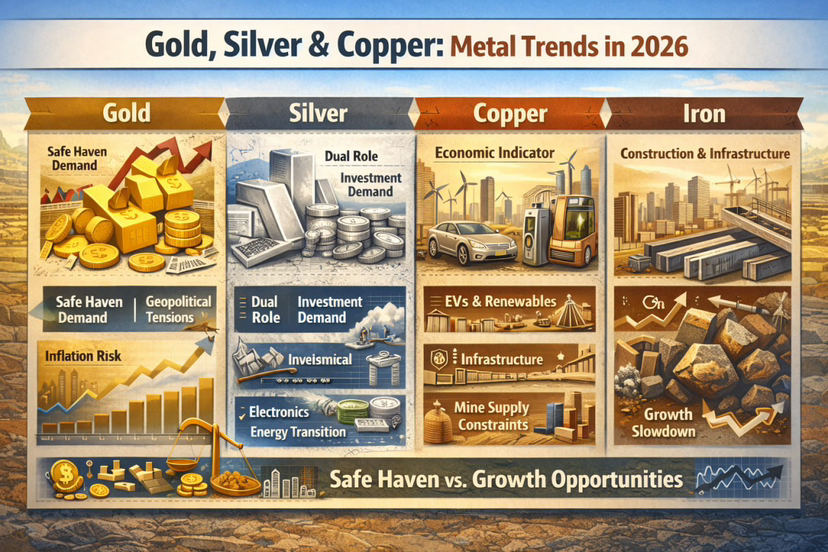 Per gli investitori, il mercato dei metalli nel 2026 presenta un mix di opportunità difensive e orientate alla crescita. L'oro potrebbe beneficiare dell'incertezza geopolitica e dei potenziali cicli di allentamento monetario. L'argento potrebbe guadagnare sia dalla domanda di investimento che dall'espansione industriale. Il rame rimane uno dei metalli più strategicamente importanti per la trasformazione energetica globale, mentre il ferro continua a seguire la salute dell'attività di costruzione e infrastruttura.