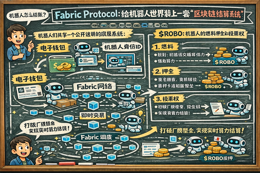 Fabric Protocol 就挺聪明,他们没去卷硬件,而是转头去搭了一个基于区块链的“协调层”。你可以把它理解成一个公开、透明的底层系统,专门给机器发“身份证”、记录“工作日志”、建立“电子钱包”。这样一来,机器之间就能自己独立完成交互了。
