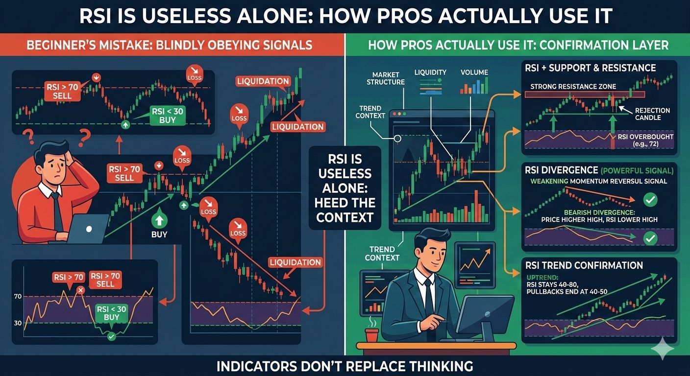 Professional traders don’t use RSI like this. They use it as confirmation, not a signal.