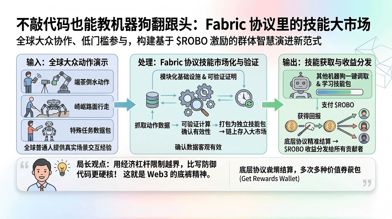 Fabric Foundation @Fabric Foundation , sfruttando le infrastrutture native di proxy di base, ha fornito un percorso di soluzione che rompe completamente le convenzioni. All'interno della rete, attraverso contratti intelligenti e registri pubblici, è stato costruito direttamente un mercato decentralizzato per il trading delle abilità dei robot. È come se si fosse creato un incredibile e aperto repository di plugin pubblici che possono evolversi continuamente per i robot generali in tutto il mondo.