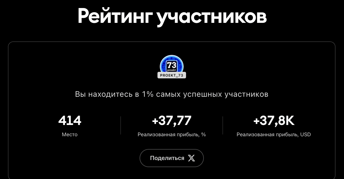 На сейчас входим в 1% самых успешных трейдеров соревнования.