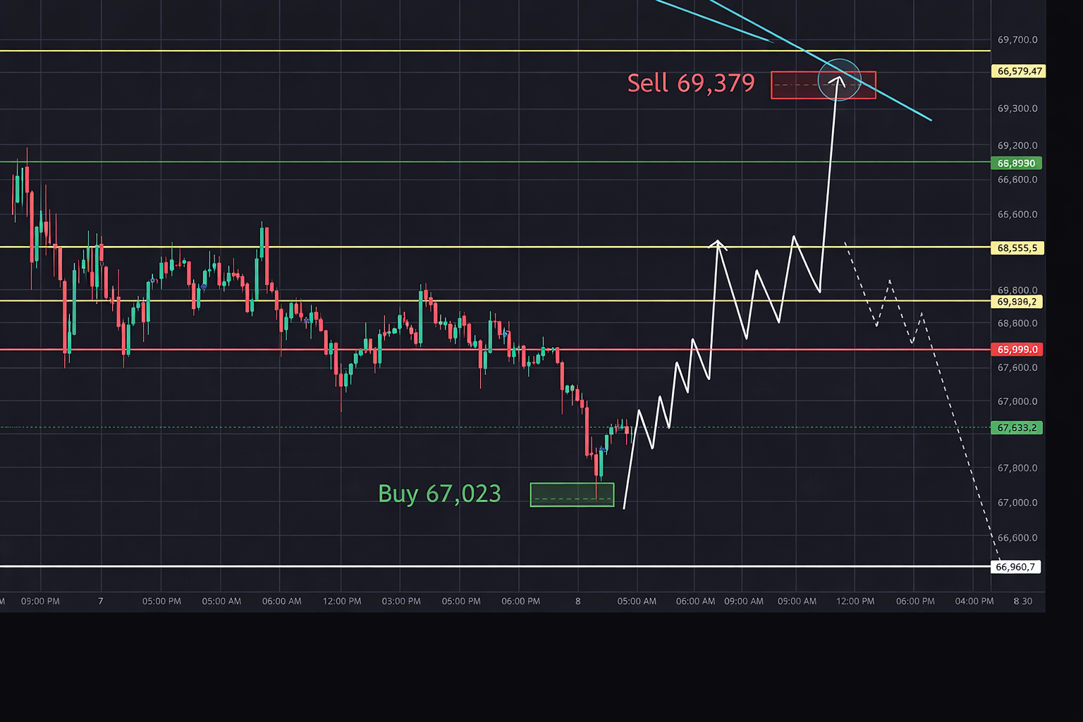 Profit Zone: Consider taking partial or full exits near $69,379 to secure gains.