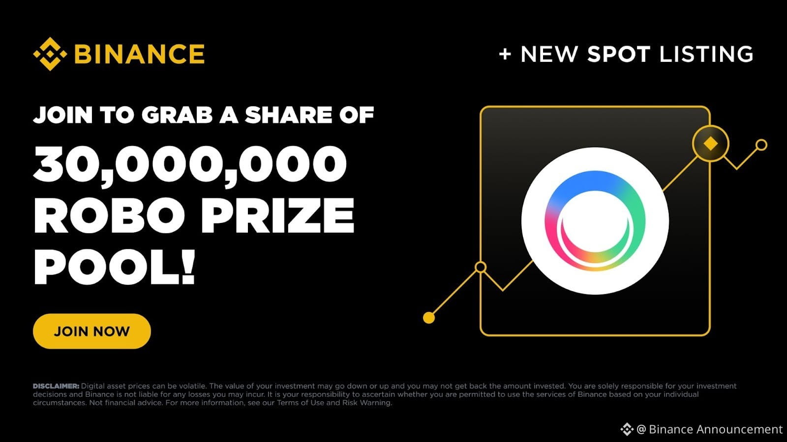 Binance Spot is excited to announce a new spot campaign for Fabric Protocol (ROBO), Fabric Protocol is a decentralized infrastructure for coordinating robots and AI workloads across devices, services and human. Eligible users will have a chance to share a total prize pool of 30,000,000 ROBO in token vouchers!