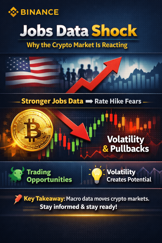 For the crypto market, this kind of macroeconomic surprise often triggers volatility. When job growth is strong, investors anticipate tighter monetary policy, which can temporarily pressure risk assets like Bitcoin and altcoins. As a result, traders may see sudden price swings, quick liquidity moves, and short-term market pullbacks.