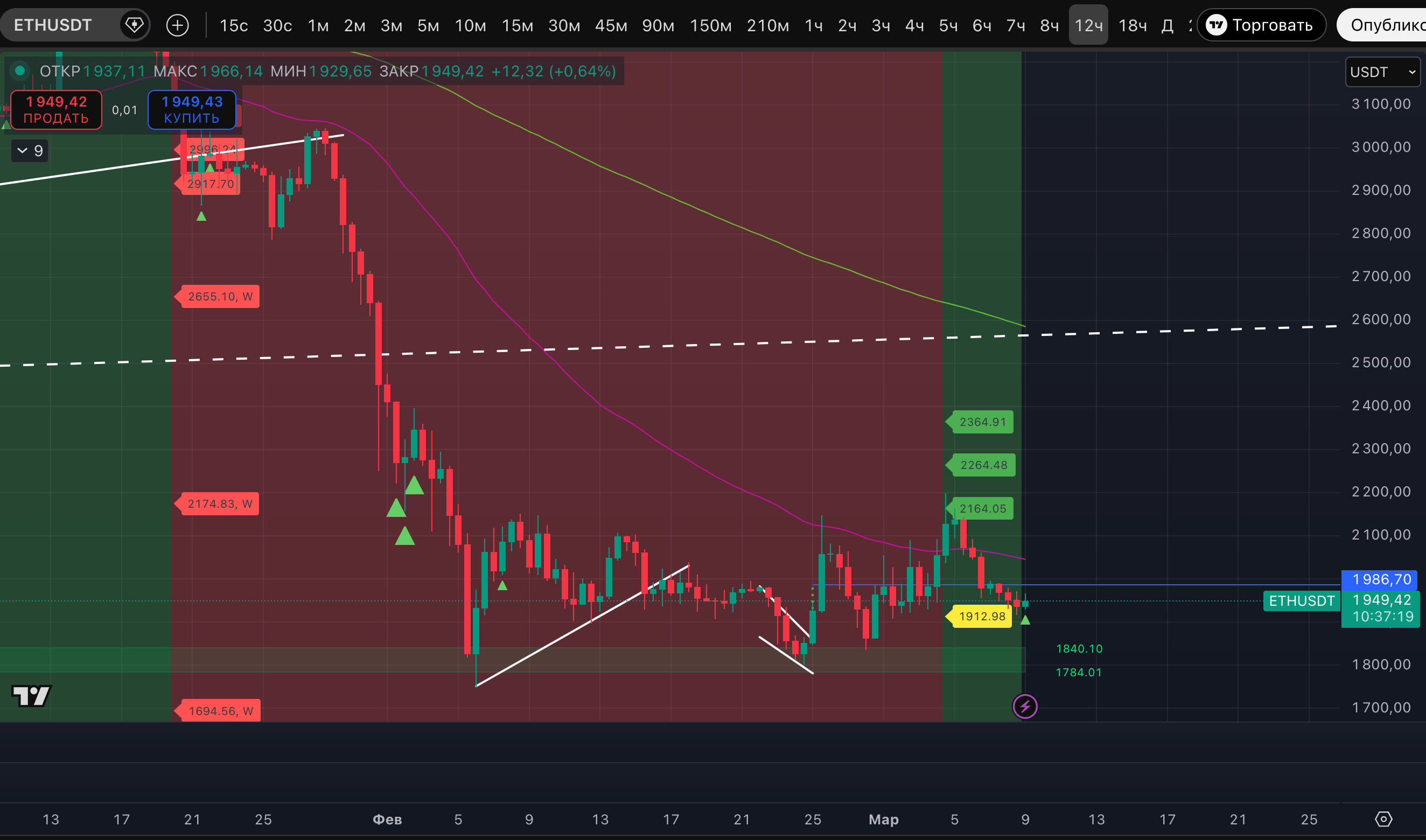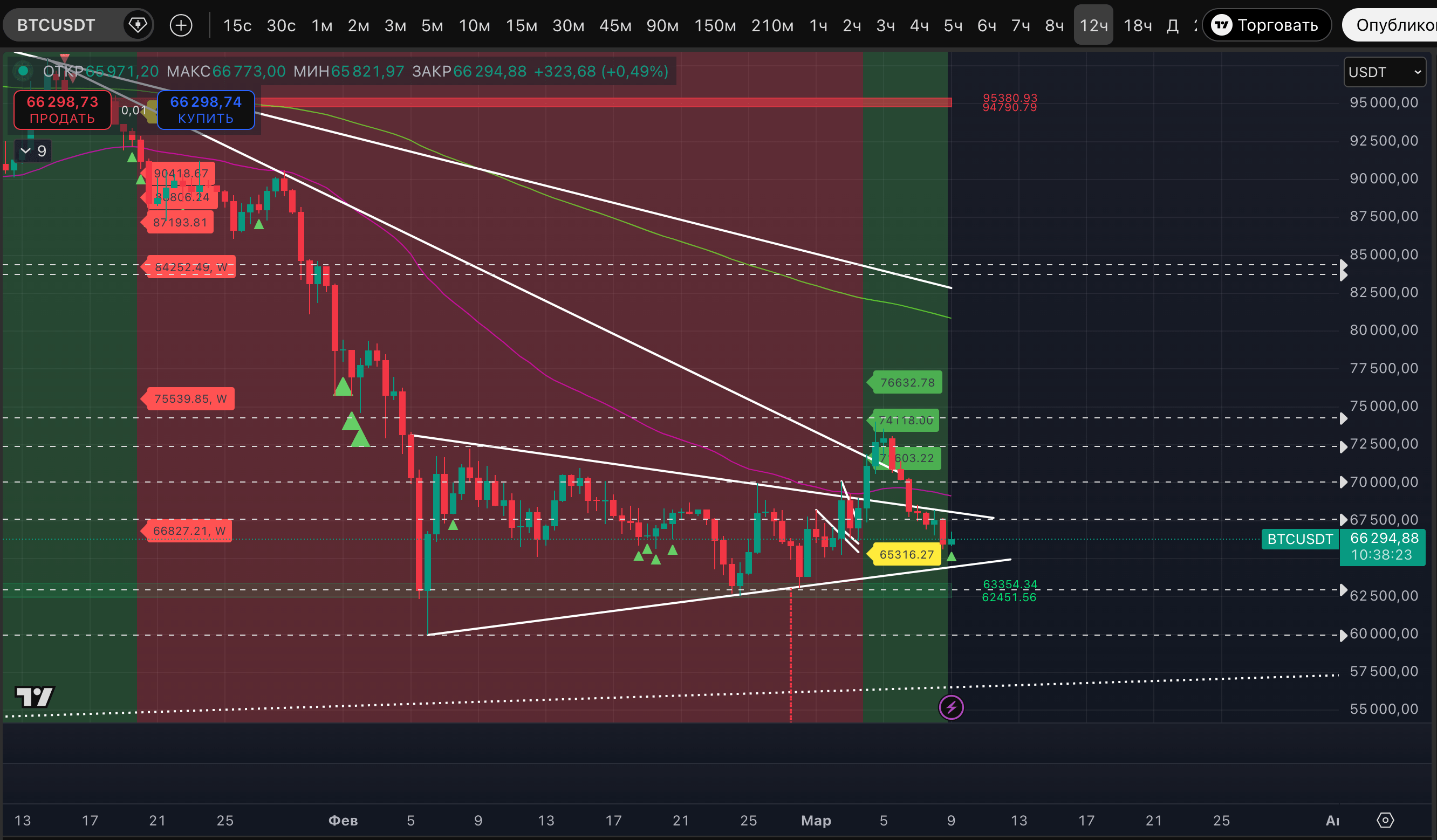 Новые 12-часовые и недельные свечи на крипторынке дают быкам шанс на рост. Не обязательно уже в ближайшие дни (хотя не исключено), но в рамках марта вероятность поставить лой в этом снижении с октября 2025 - растет.