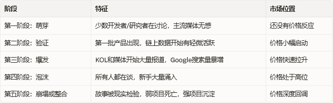 当前叙事阶段:第二阶段——产品出现,链上数据开始活跃。价格尚未完全反应。