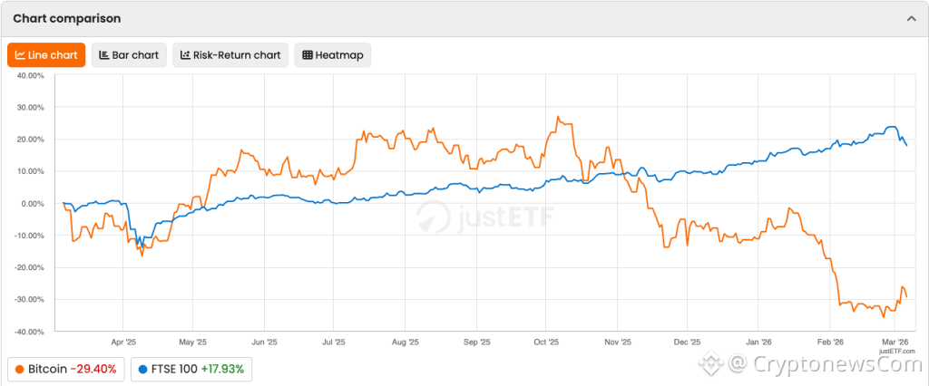 Bitcoin (BTC) is defying a broader risk-off mood in European equities this morning, hovering around $69,000 while the FTSE 100 slides under the weight of surging bond yields.