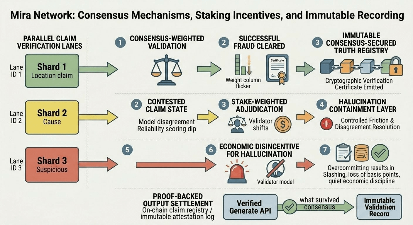 Fans in the rack lifted a notch when the next validator batch started on Mira trustless consensus. Just enough to hear the air change. I kept staring at the trace because something felt wrong in the pace of it. Not broken. Worse. Efficient.