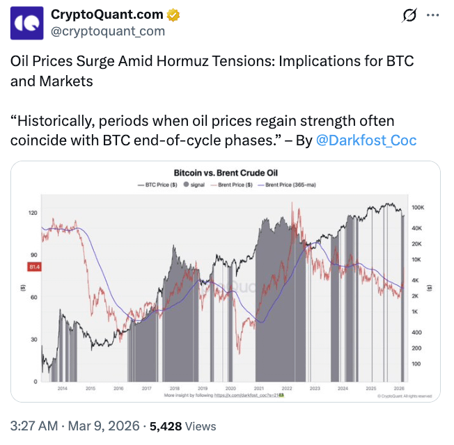 Các nhà nghiên cứu tại CryptoQuant chỉ ra rằng sự bất ổn địa chính trị thường ảnh hưởng mạnh mẽ hơn đến các tài sản có độ biến động cao. Vì vậy, Bitcoin phản ứng với các cú sốc kinh tế vĩ mô khác biệt so với các tài sản trú ẩn an toàn truyền thống. Dữ liệu cũng cho thấy rằng, trong bối cảnh khủng hoảng toàn cầu, các nhà đầu tư vẫn xem tiền điện tử như một khoản đầu tư rủi ro cao.