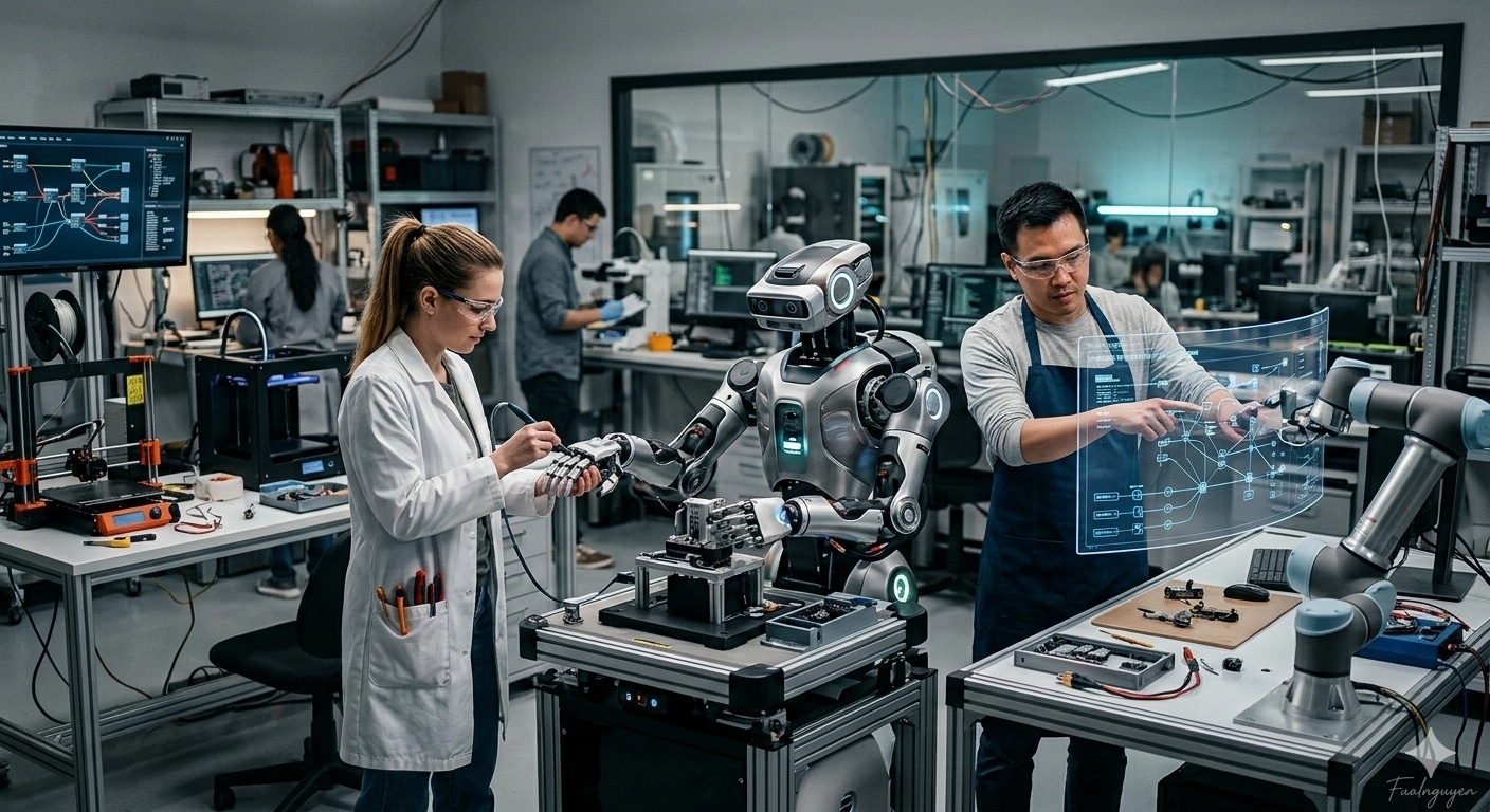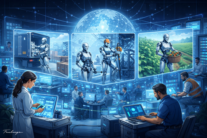 A third essential component is robot and software developers. These are the people who create new skills for robots, ranging from climbing large construction structures and assembling industrial equipment to caring for crops in agriculture. Once a robot learns a new capability, that skill can be shared across the network. Over time, the entire robot workforce could improve collectively as each incremental innovation spreads throughout the system.