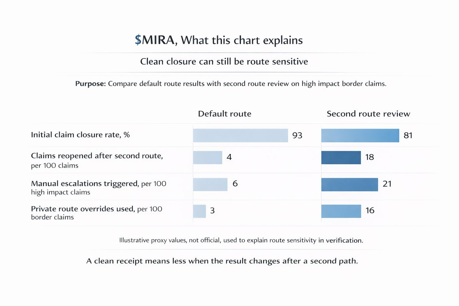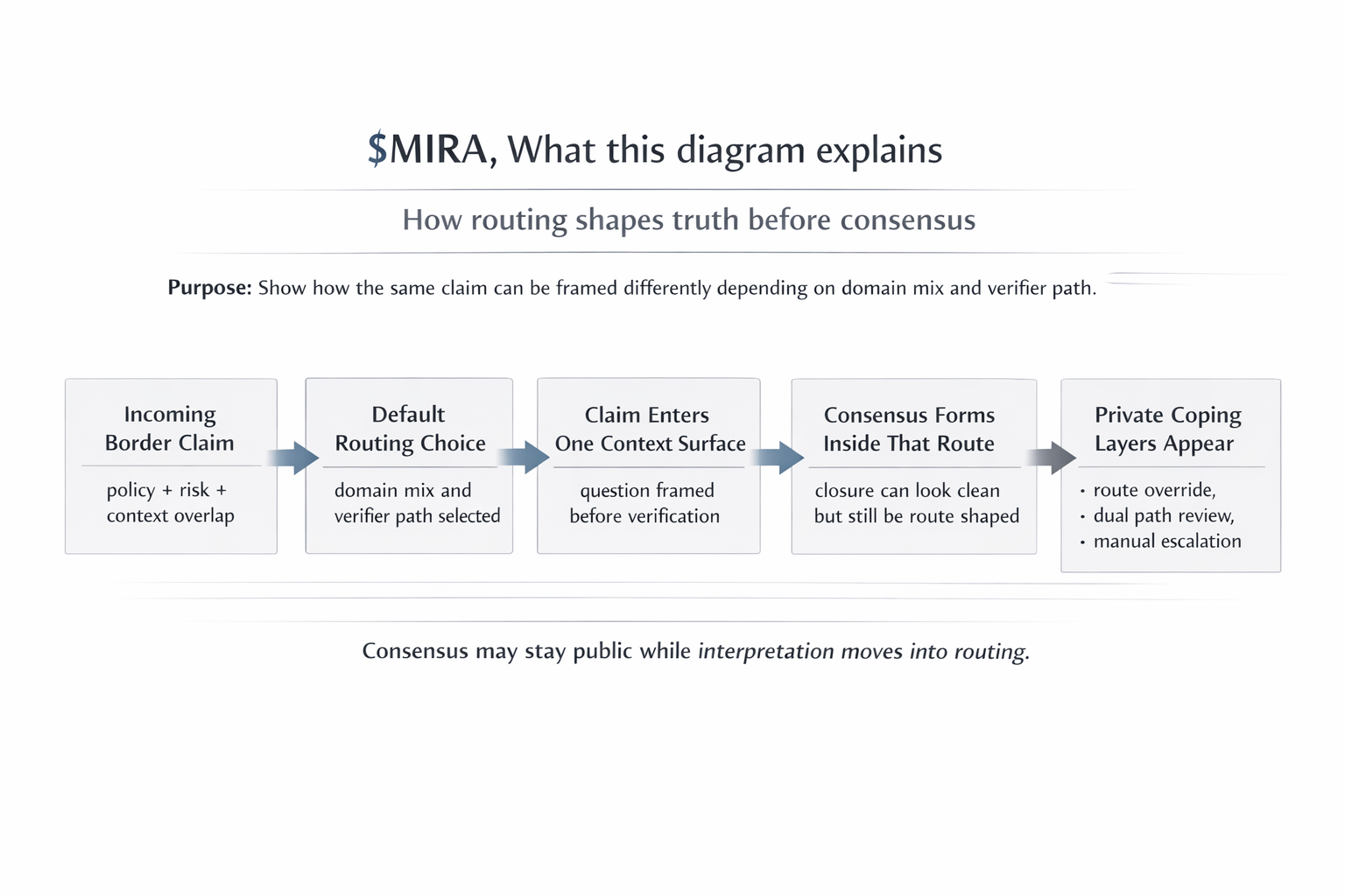 The token matters only if it pays for that burden in practice. If $MIRA matters here, it should help fund the discipline that keeps routing from collapsing into private truth management. Cross domain verification where needed. Path transparency. More expensive handling for claims whose meaning depends on where they were sent. Incentives that make it costly to let the default path quietly flatten a claim that should have been exposed to more tension before it closed.
