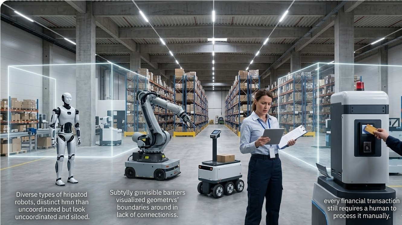 Imagine you run a logistics company in 2026. You have 200 robots working across three warehouses in different countries. Each one is made by a different manufacturer. None of them can talk to each other. None of them can get paid directly. None of them have any verifiable track record you can share with a new employer or insurance provider. And every single financial transaction they generate still requires a human to process it manually.