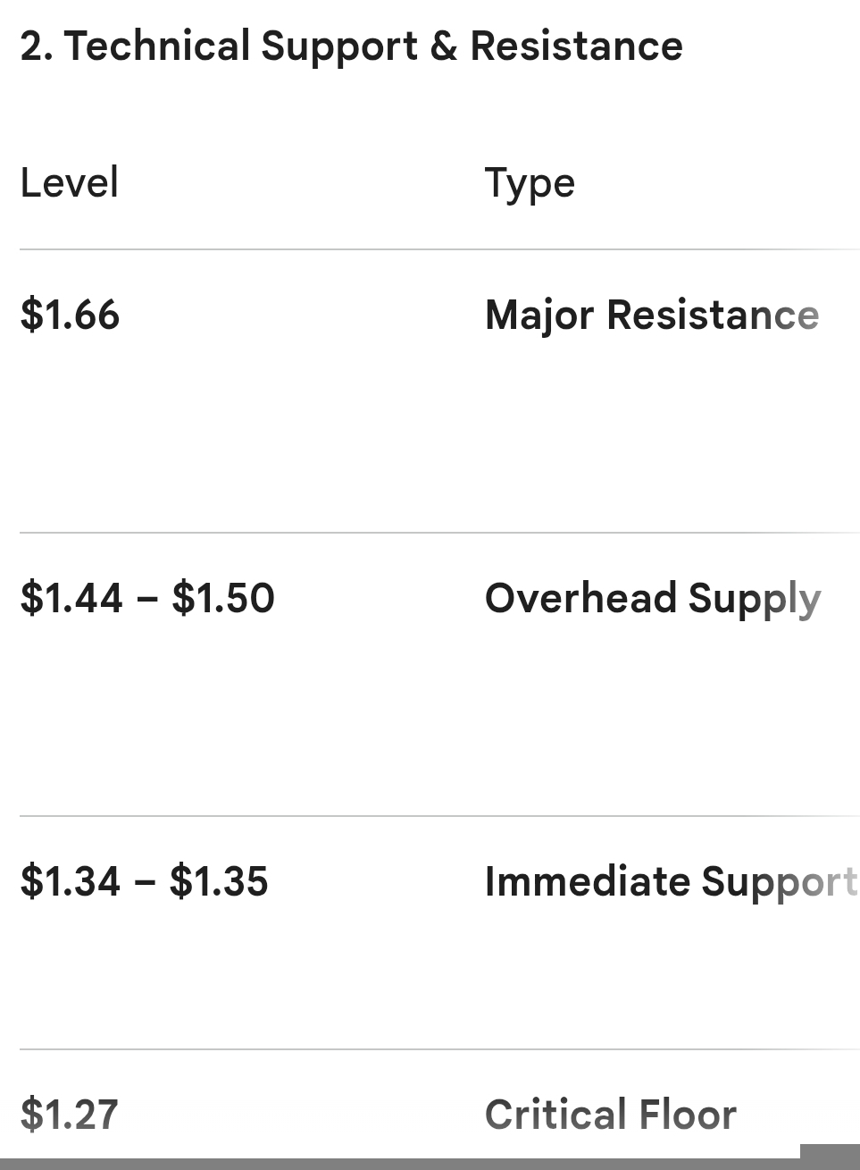Entry: Buy a portion near the current price of $1.38 – $1.40.