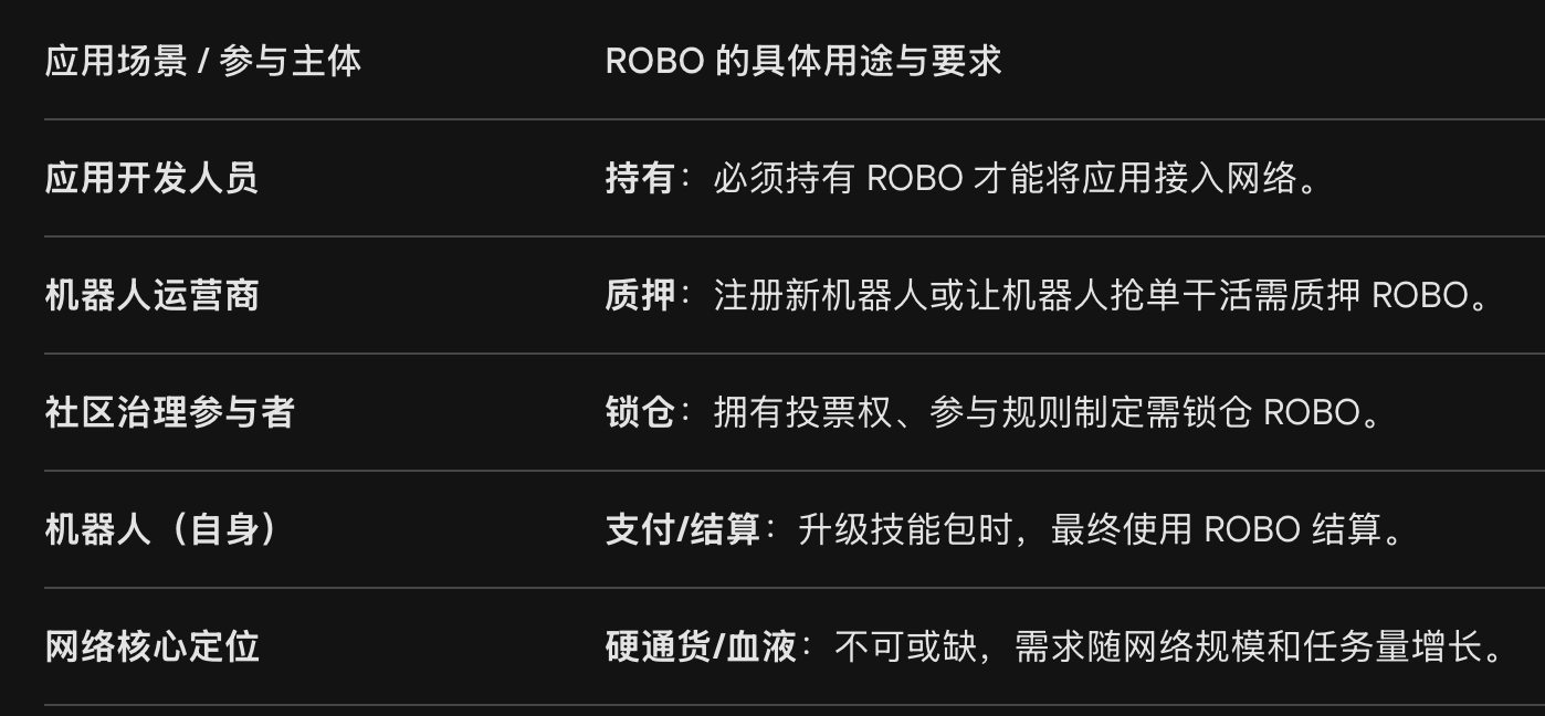三、$ROBO 代币在Fabric 网络里面都有哪些具体的用途,为什么说它的需求是来自于真实场景的?