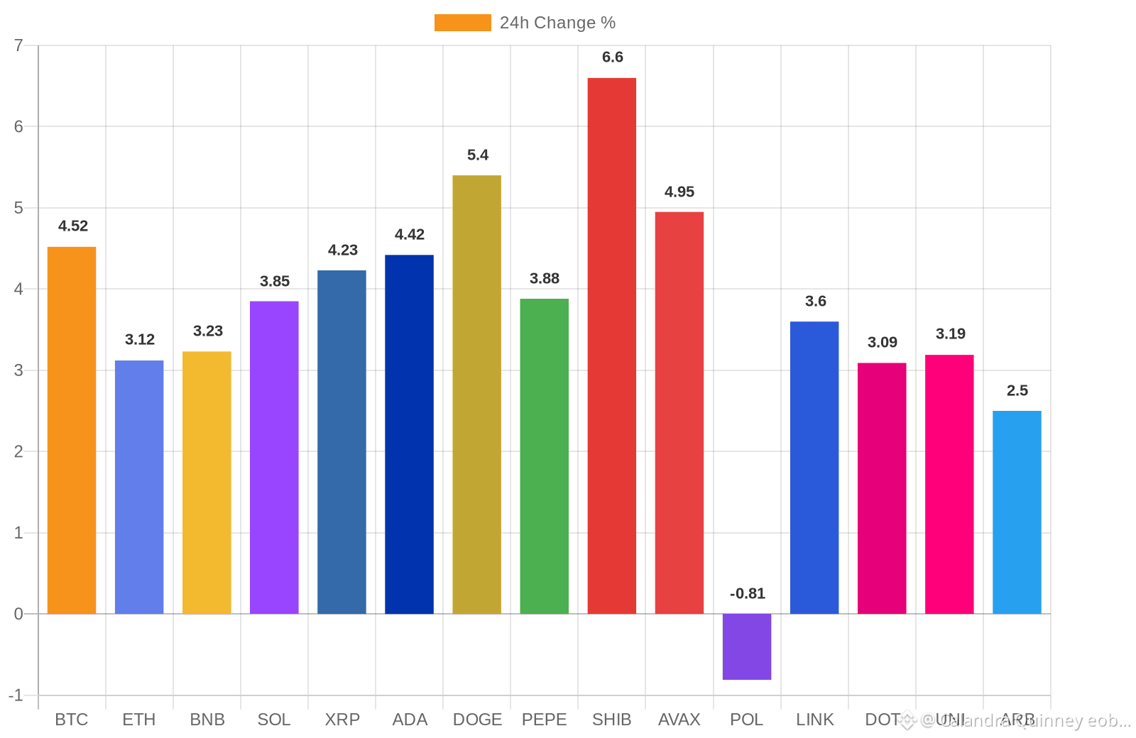 $DOGEleads the legacy meme cohort today, surging+5.40%to$0.0950on a robust$1.19Bin volume. The$0.10level looms as the next major psychological battleground — a level that has historically triggered both retail FOMO and whale distribution. Elon Musk's ambient influence over DOGE narrative momentum remains a wildcard, and on days like today, that sentiment premium is clearly being priced in.$PEPEheld firm with+3.88%gains to\0.00000337on$313.9Mvolume, demonstrating that community-driven bid support remains sticky even in uncertain macro environments. The token's ability to maintain volume above$300Mon a non-explosive day signals baseline demand, not just speculative froth.$SHIBdelivered the meme coin shock of the session —+6.60%to\0.00000569on$128.9Mvolume, outpacing every major meme coin in percentage terms. The Shibarium ecosystem continues to build quietly in the background, adding a utility layer that distinguishesSHIBfrom pure meme speculation. The volume spike, while not massive in absolute terms, represents a meaningful surge relative to recent averages and warrants close attention.