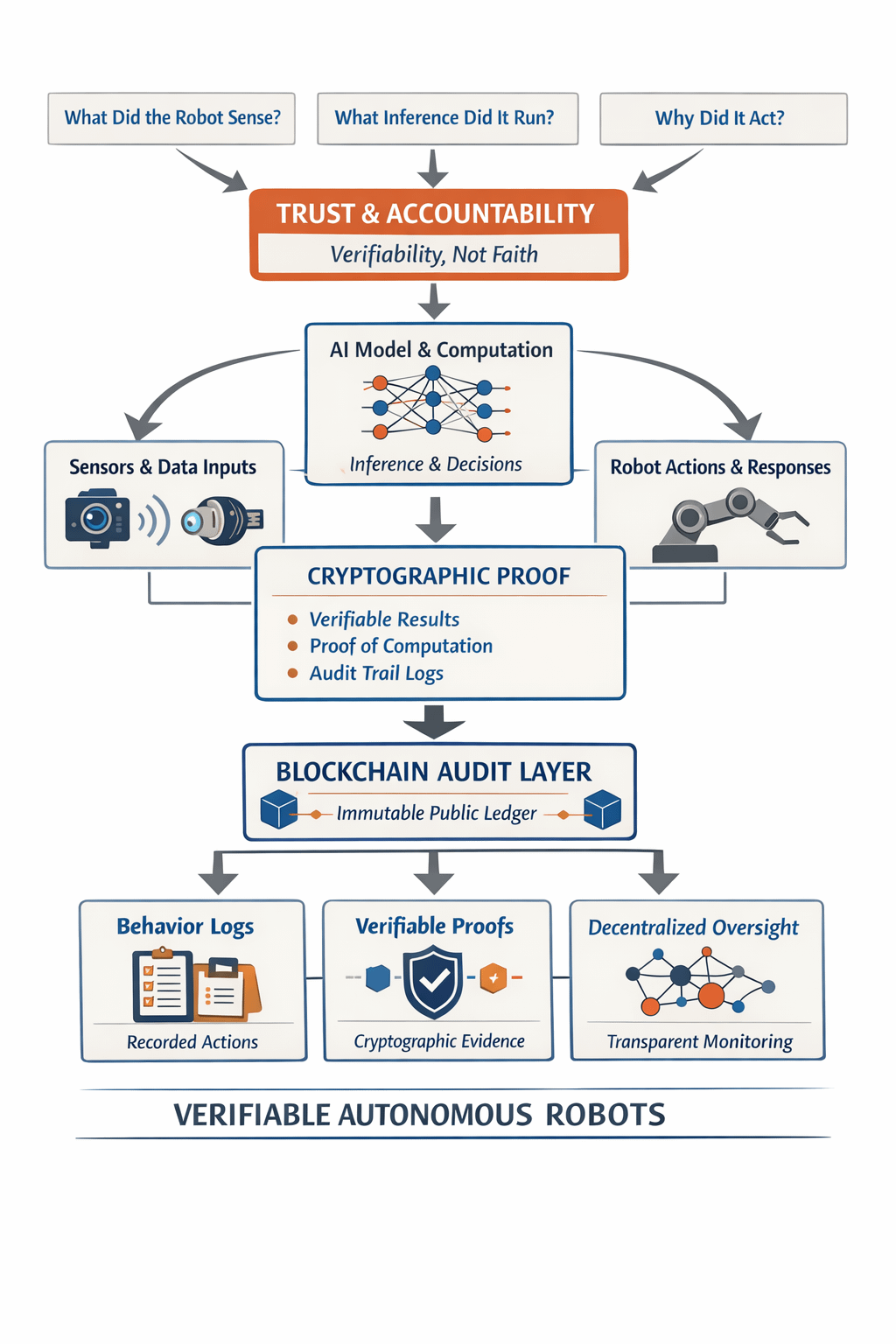 I write as a researcher who cares about both code and consequences. Trust is not a single technical property. It is a bundle of practices. Accountability means knowing what a robot sensed. Accountability means knowing what inference it ran. Accountability means knowing why it acted. For autonomous systems that operate among people we need verifiability not faith.
