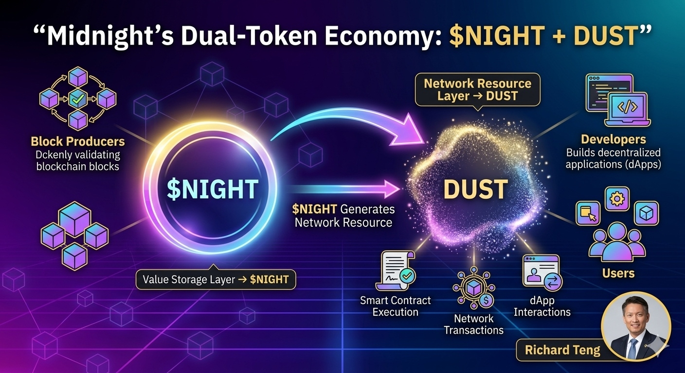 Instead of relying on a single token for everything, Midnight introduces a two-layer economic system built around Night and DUST.