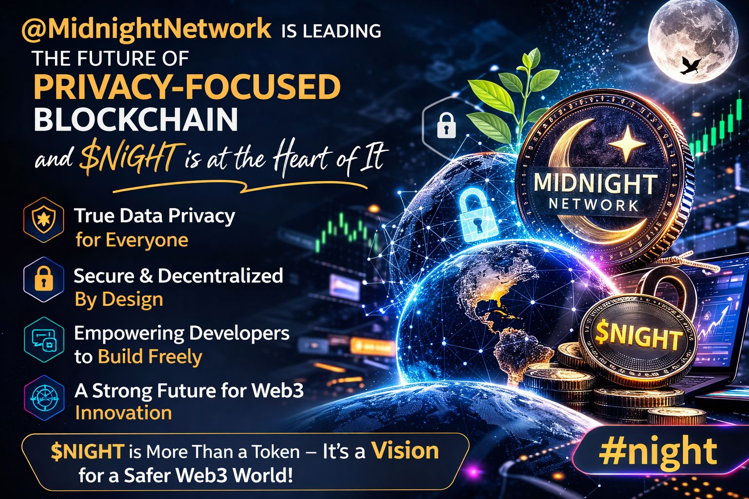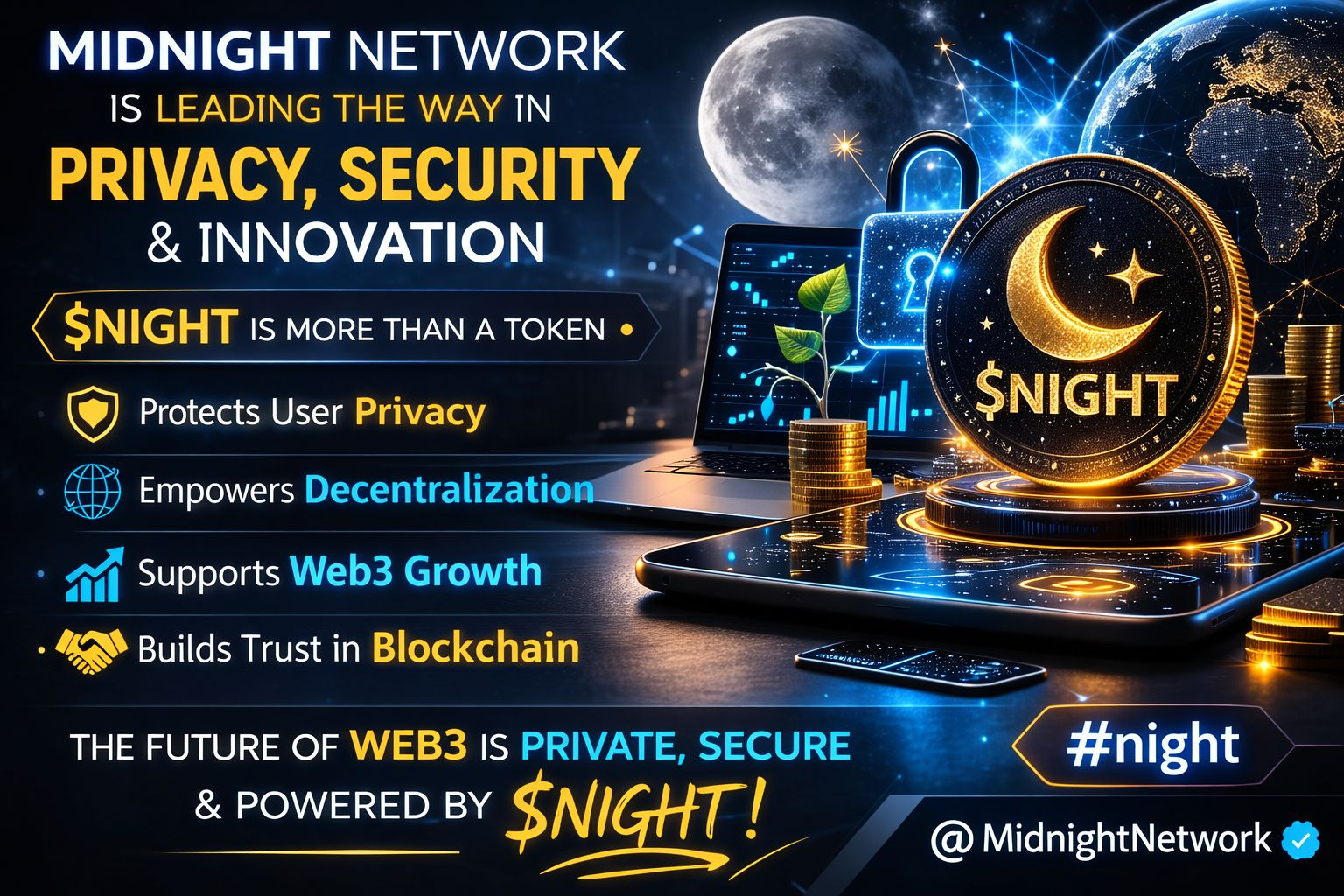 Midnight Network represents a step toward a more secure, private, and innovative blockchain ecosystem. The journey of $NIGHT is just beginning, and it will be exciting to see how this project contributes to the next phase of Web3 development.