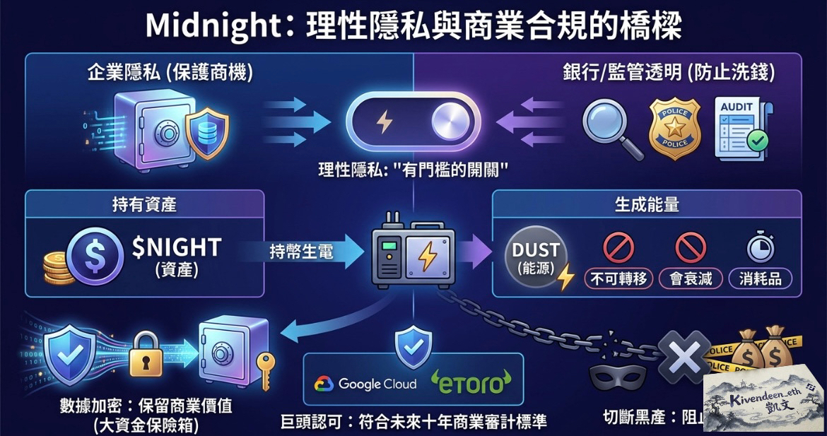 Midnight 解決了一個長久以來的商業悖論,由於企業需要隱私來保護商機,但銀行需要透明來防止洗錢。