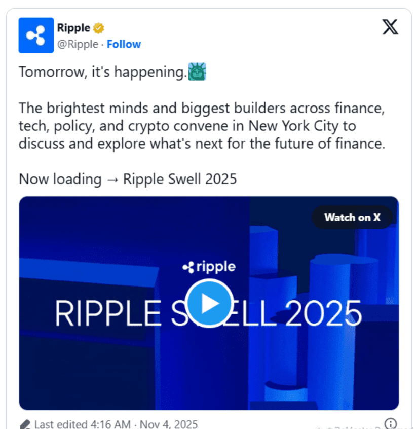 L'attesa è finita — Ripple Swell 2025 inizia domani a New York City. Non è solo un altro evento crypto... è il momento che i possessori di XRP stavano aspettando.