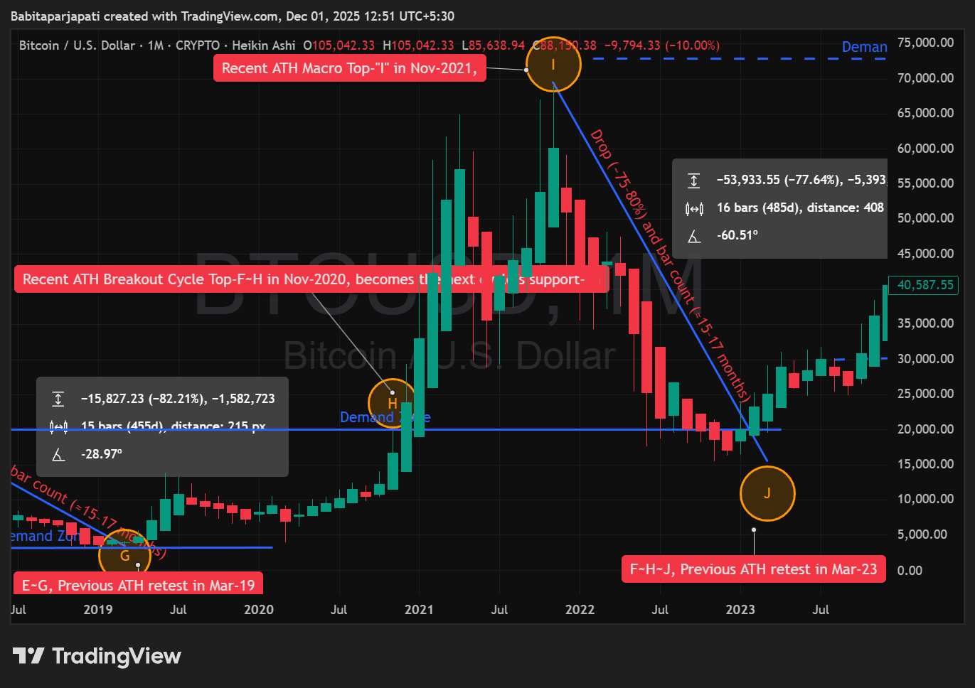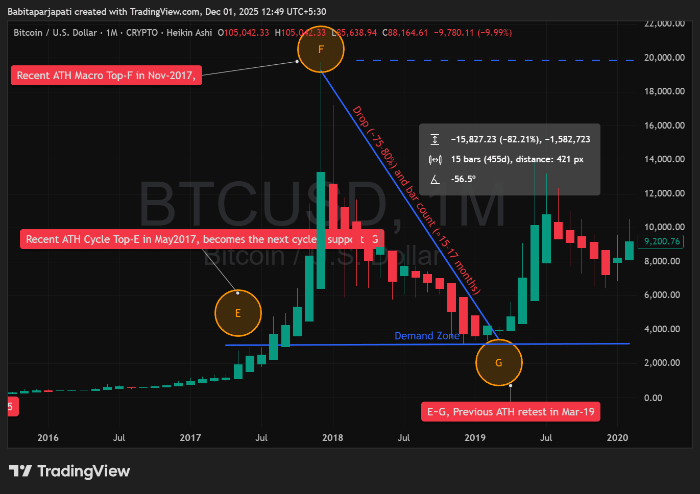 Rottura dell'ATH → ATH → crollo del 77% → Ricalcolo dell'ATH 2017