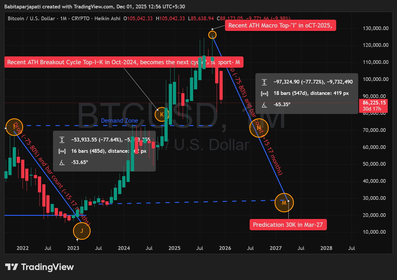 Declino 2025–2027 → ricalcolo della zona ATH 2020 (~$30.000)