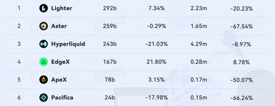 A novembre, il volume degli scambi dei contratti permanenti per i Perp DEXs principali è diminuito dell'1,70% rispetto a ottobre, e il traffico del sito web è diminuito del 35,5%.