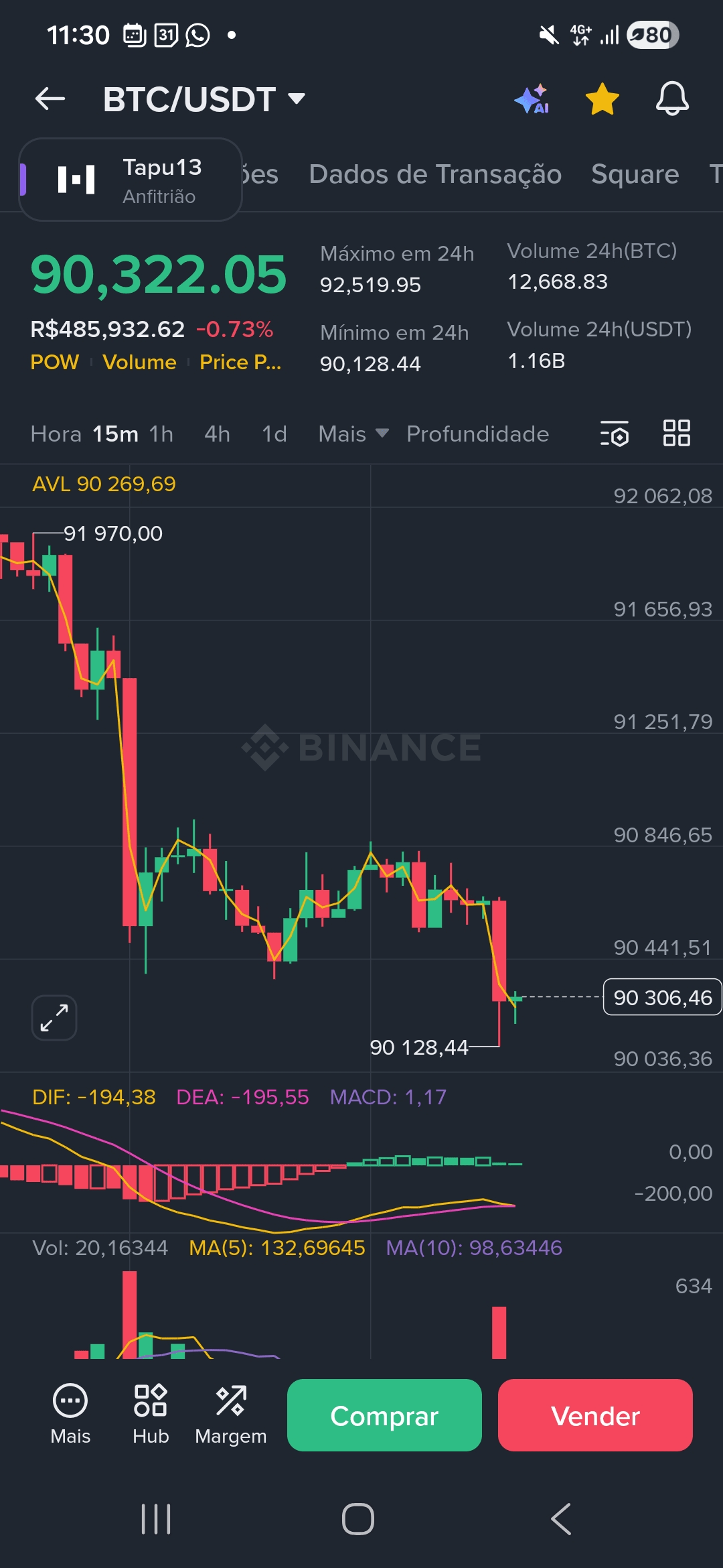 Il prezzo sta oscillando tra i 90,300$ e i 90,600$ nelle ultime ore.