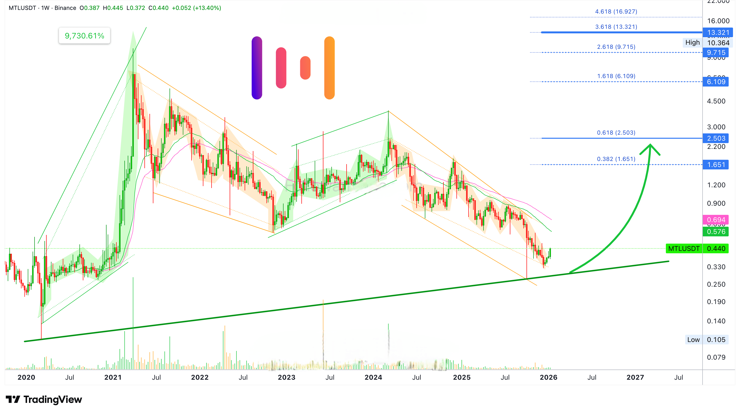 Il precedente ciclo rialzista di Metal (MTLUSDT) ha prodotto un'onda con una crescita totale del 9.730%. È tutto iniziato con un'uscita di mercato simile a quella di ottobre 2025.