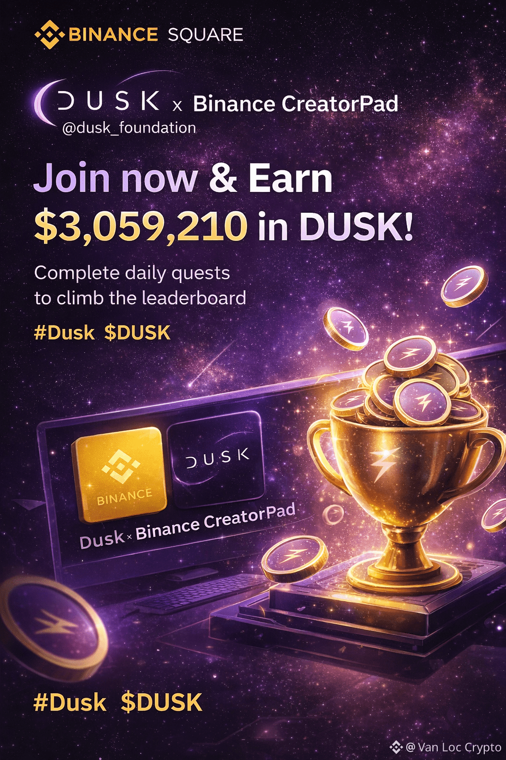 Hiện tại, @dusk_foundation đang phối hợp với Binance CreatorPad để tổ chức một chiến dịch với tổng giải thưởng hơn 3,059,210 $DUSK dành cho community creators tham gia hoàn thành nhiệm vụ mỗi ngày và thu điểm trên bảng xếp hạng. Đây là cơ hội tuyệt vời để tăng kiến thức về Dusk và đồng thời nhận phần thưởng hấp dẫn. �