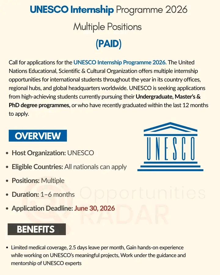 Credito: UNESCO. Questo post è solo a scopo informativo. Youth Opportunity non possiede né rivendica le opportunità condivise. Tutti i dettagli sono tratti da fonti pubblicamente disponibili o ufficiali e possono cambiare in qualsiasi momento. Si prega di ve$ETH
