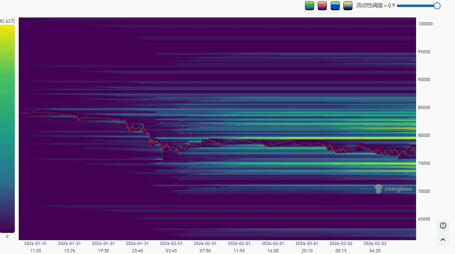 Il calo del fine settimana ha lasciato una struttura tecnica cruciale: un nuovo "minimo parallelo" formatosi intorno ai 74.000 dollari. Ciò significa che un gran numero di ordini stop-loss e liquidità si concentrano qui. Sulla base dell'effetto "gravità di liquidità", c'è un'altissima probabilità che i prezzi tornino a questo livello per una potenziale "caccia". In futuro, il mercato vedrà probabilmente due possibili scenari intorno ai 74.000 dollari: