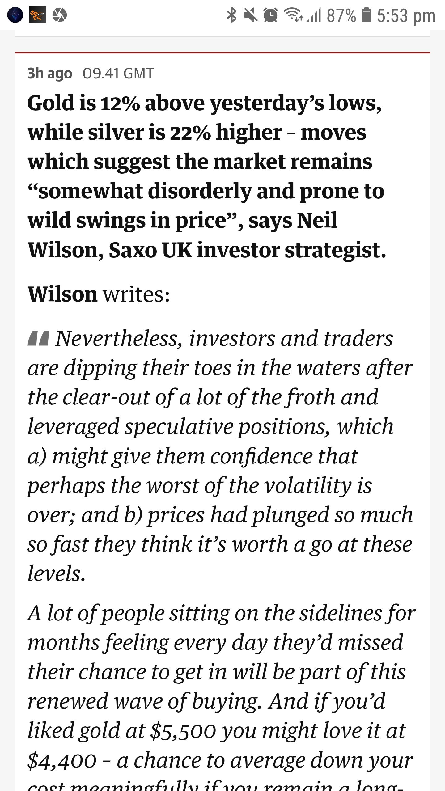 • Gli analisti notano che le condizioni di sovra-vendita e l'acquisto di valore hanno spinto i prezzi dell'oro dopo una drammatica vendita, che è seguita a sviluppi politici inaspettati — inclusi cambiamenti nelle aspettative di leadership della Fed degli Stati Uniti. �