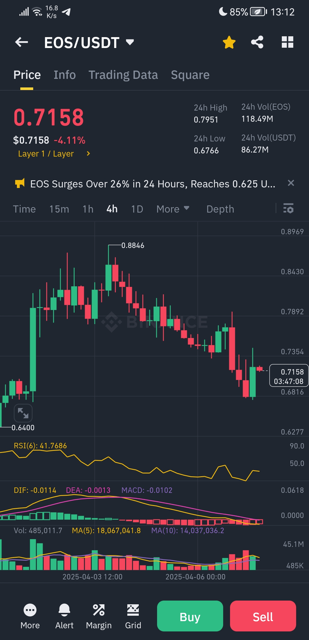 Przy tak dużym wolumenie handlowym (118,49M EOS w ciągu 24 godzin), jest wyraźne zainteresowanie! Ale ostrożność jest konieczna – potwierdzenie przebicia to klucz!