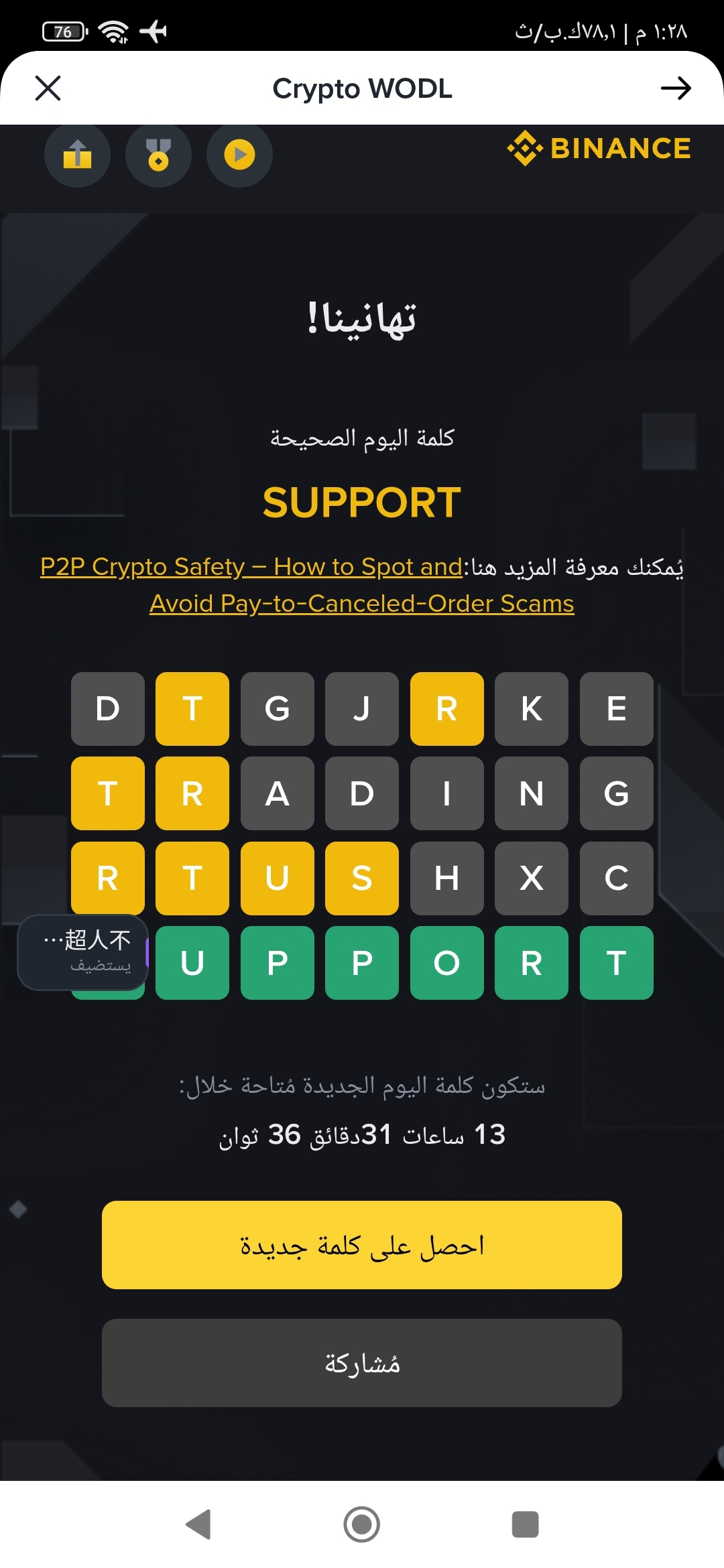 حل كلمة اليوم و اربح عملة رقيمة