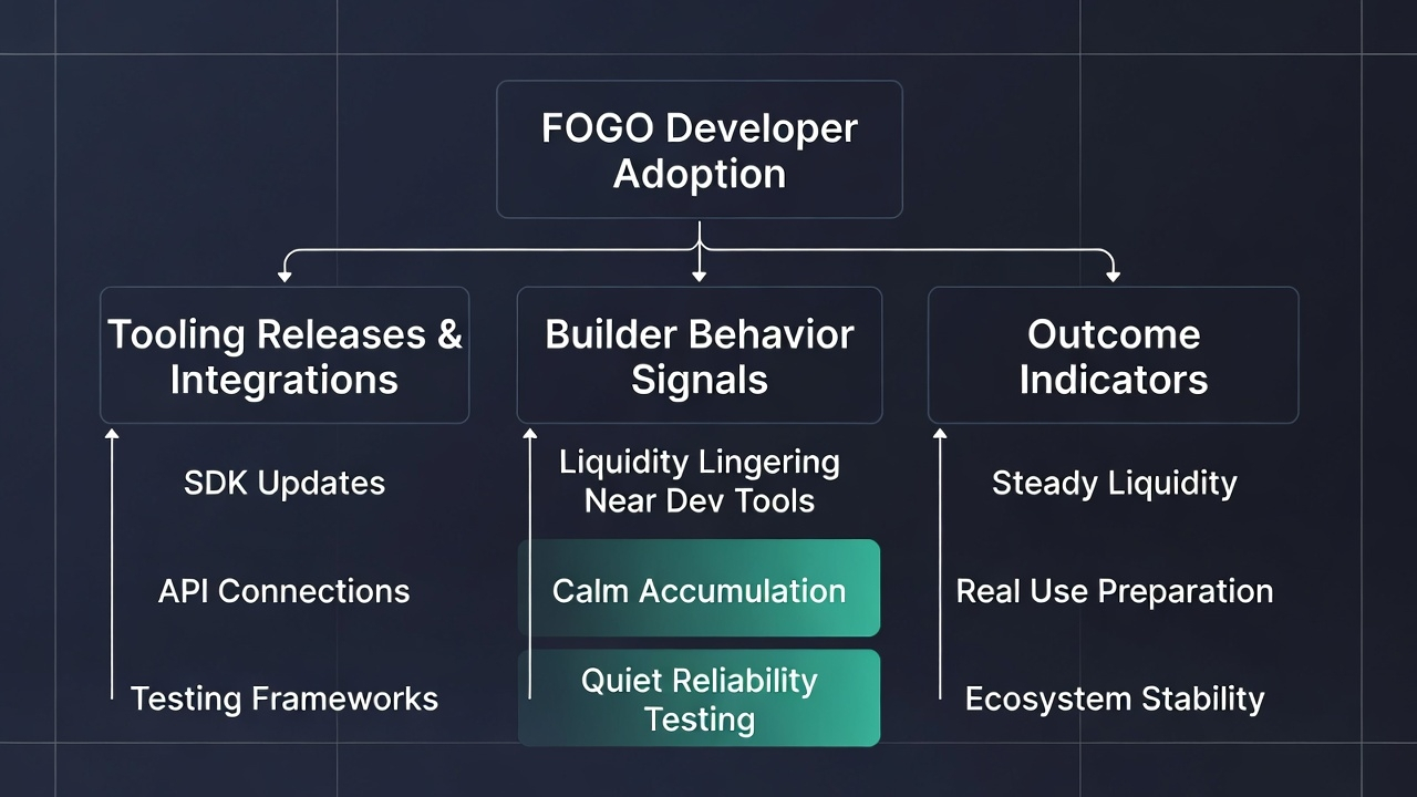 Something I’ve noticed over time: liquidity has a habit of telling the real story before announcements do. When funds stop jumping between opportunities and begin lingering near developer tools, it often means builders are quietly testing reliability. That detail matters now because steady liquidity usually signals preparation for real use, and lately some of that calm accumulation seems to be forming around @Fogo Official