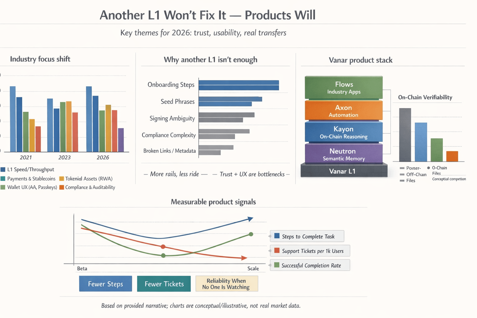 That’s why “another L1 won’t fix it” lands for me. A faster base layer doesn’t make onboarding calm, doesn’t make compliance readable, and doesn’t make a consumer trust what they’re signing. Most people don’t wake up wanting a new settlement layer. They want a game that doesn’t glitch, a payment that clears, a receipt they can find, a ticket that doesn’t get forged, and an app that doesn’t ask them to memorize a seed phrase.