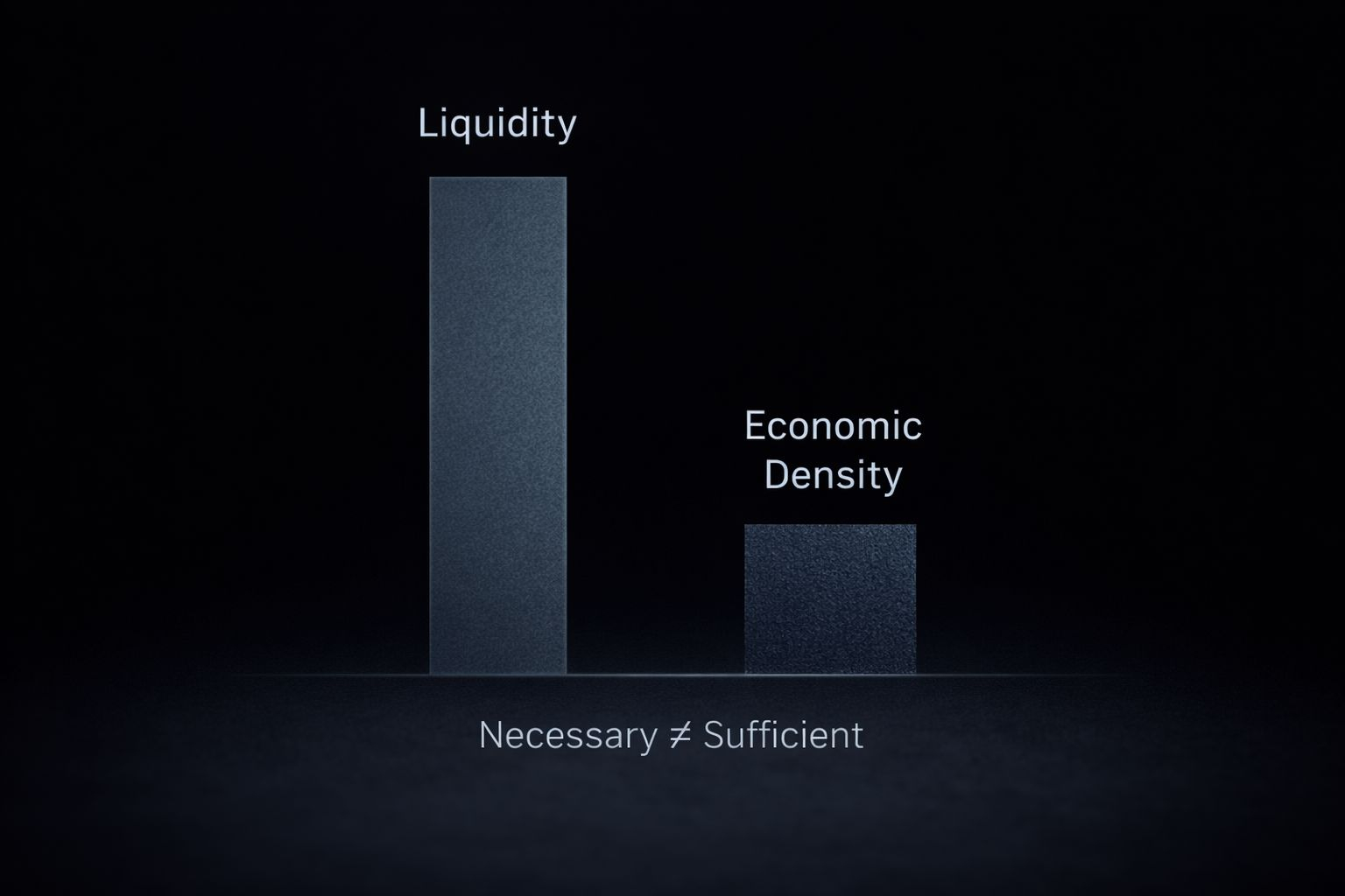 At a technical level, liquidity reflects the ability to execute transactions with minimal price impact. It describes trading depth and short-term market efficiency. It does not, by itself, measure demand durability, capital stickiness, or economic integration within a network.