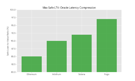 I checked the liquidation data across lending protocols that launched on Fogo versus their deployments on other chains. The pattern is unmistakable. Protocols using Fogo's native Pyth integration are running with liquidation thresholds that would be suicidal elsewhere. On Ethereum mainnet, a typical lending protocol might liquidate at 85-90% loan-to-value depending on the asset. On Fogo, I'm seeing protocols push to 95-97% with similar risk profiles.